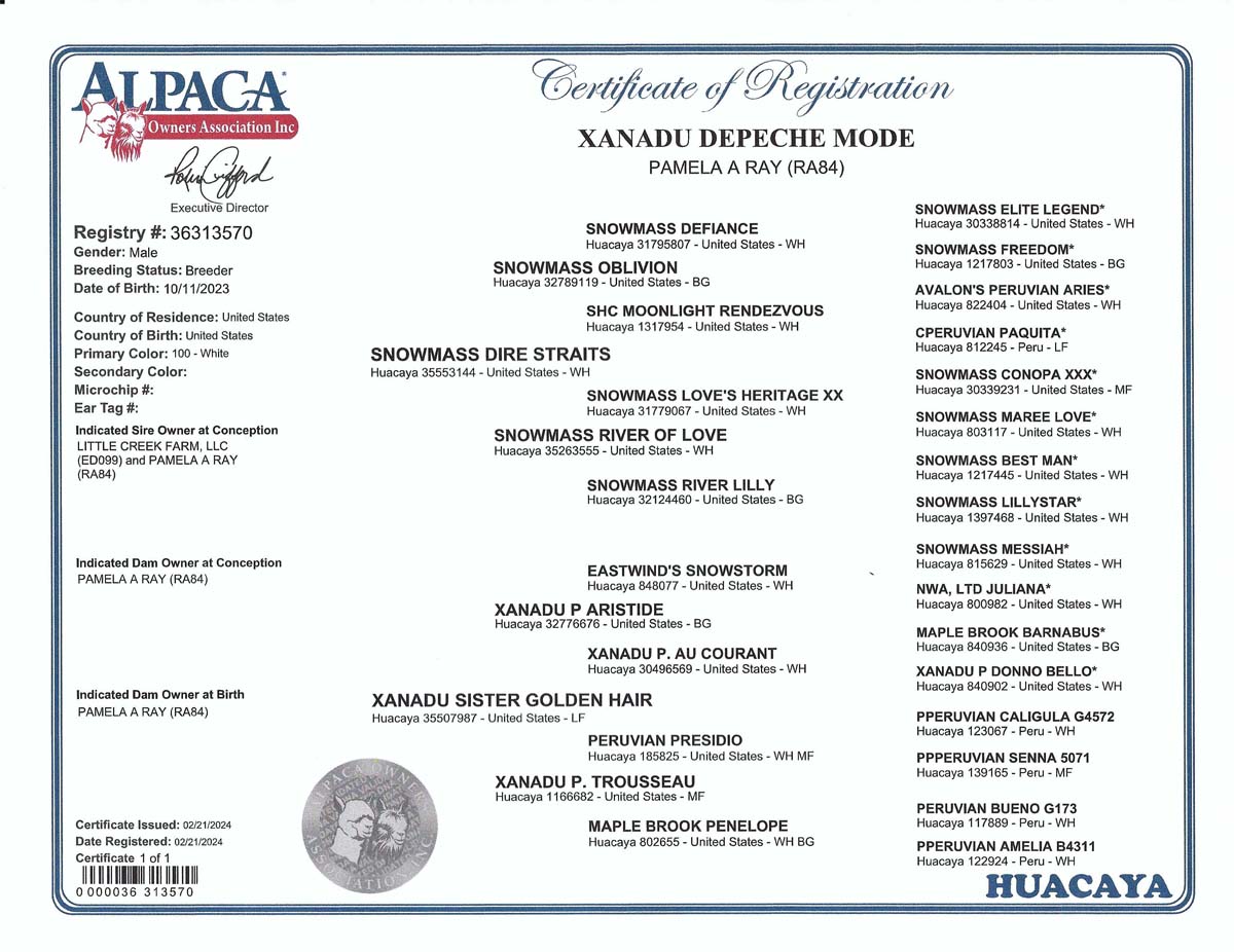 Xanadu Althea, full sister to Xanadu Aristide, a